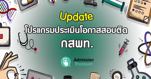 โปรแกรมประเมินโอกาสสอบติด กสพท. เป็นหนึ่งในโปรแกรมของ AdmissionPremium.com ที่ช่วยน้อง ๆ ในการคำนวณและบันทึกคะแนน กสพท. แสดงกราฟเทียบคะแนน ประเมินโอกาสสอบติด ...
