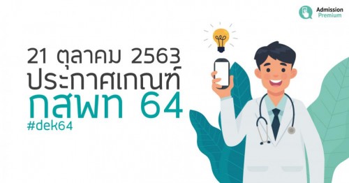 "การรับบุคคลเข้าศึกษา ของกสพท ปีการศึกษา 2564 จะเริ่มประกาศหลักเกณฑ์การคัดเลือกฯ อย่างเป็นทางการ ประมาณวันที่ 21 ตุลาคม 2563 ขอให้ท่านติดตามรายละเอียดได้ที่ ...