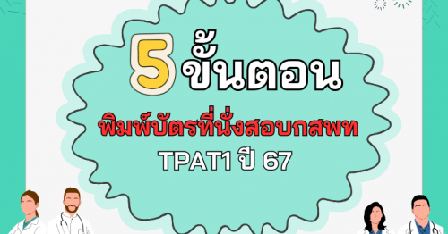 พิมพ์บัตรที่นั่งสอบกสพท. TPAT1 ปี2567 วันนี้แอดมินมารวม 5 ขั้นตอนการพิมพ์บัตรที่นั่งสอบกสพท. หรือ TPAT1 เปิดระบบพิมพ์บัตรที่นั่งสอบ วันที่ 23 ...