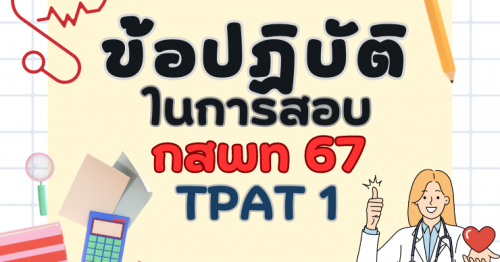 ข้อปฏิบัติที่กสพท. กำหนดสำหรับ TPAT1 (วิชาเฉพาะ กสพท) สวัสดีค่ะน้องๆ ที่กำลังจะสอบ TPAT1! (TPAT1 คืออะไรอ่านเพิ่มเติมได้ คลิกที่นี่) หลายคนคงกำลังเตรียมตัวอย่างขะมักเขม้นสำหรับสอบ ...
