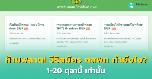 น้อง ๆ ที่จะสมัครกสพท TPAT1 ต้องใช้เอกสารสำคัญ 3 อย่าง มีอะไรบ้าง? รวมไว้ให้แล้ว! เริ่มสมัครวันที่ 1 - 20 ตุลาคม 2568 1. รูปถ่าย - รูปถ่ายปัจจุบันของผู้สมัคร ...