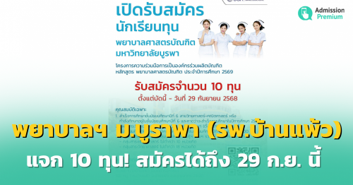 ข่าวดี สำหรับน้อง ๆ ที่สนใจเรียนพยาบาล ตอนนี้โรงพยาบาลบ้านแพ้วมีการให้ทุนการศึกษาแก่นักเรียนในพื้นที่ จังหวัดสมุทรสาครและพื้นที่ใกล้เคียง เพื่อเข้าศึกษาในระดับปริญญาตรี ...