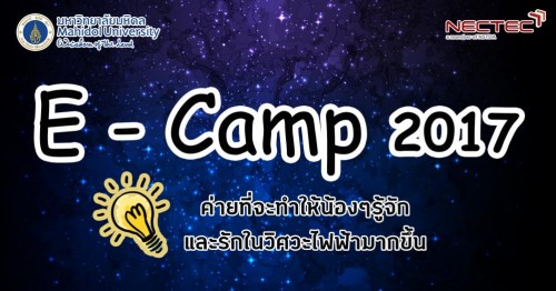 เชิญชวนน้องๆ มารู้จักวิศวฯ ไฟฟ้ากันให้มากขึ้น กับค่าย E-camp2017 จัดโดยพี่ๆ ชมรมอิเล็กฯ ม.มหิดล